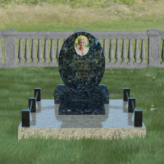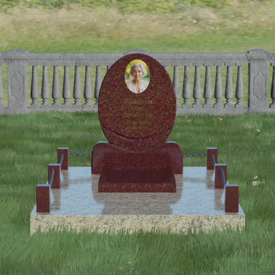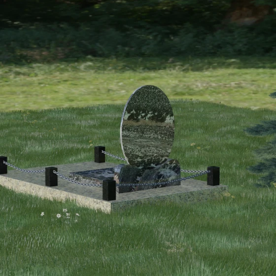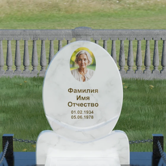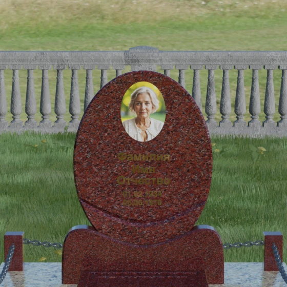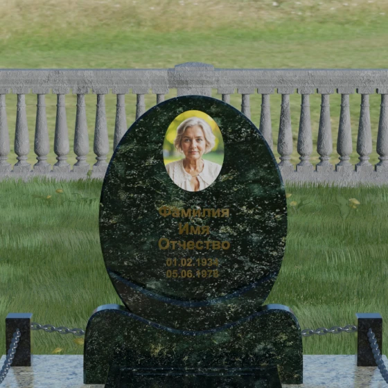 Данное ритуальное изделие притягивает взгляд своей совершенной гармонией и мягкостью линий. В основе композиции лежит безупречный овал — символ вечности, завершенности и бесконечного круговорота жизни. В отличие от строгих прямоугольных форм, эта стела выглядит более одухотворенно и спокойно, привнося на место захоронения атмосферу умиротворения. Особое внимание заслуживает художественная обработка основания: овальная плита плавно переходит в изящную подставку с мягкими «плечами» или волнообразными изгибами, которые создают надежную опору для всей конструкции. Каждая грань камня проходит многоступенчатую ручную и станочную обработку, что позволяет добиться идеальной гладкости. Отсутствие острых углов делает надгробие визуально легким, несмотря на значительный вес натурального камня.