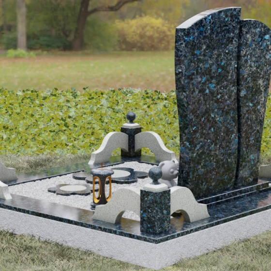 Данный мемориальный комплекс — это воплощение эстетики и надежности. Сложная геометрия стелы, дополненная профессионально выполненным цоколем и декоративными элементами, превращает место памяти в благородный символ любви, который не подвластен времени и природным стихиям.