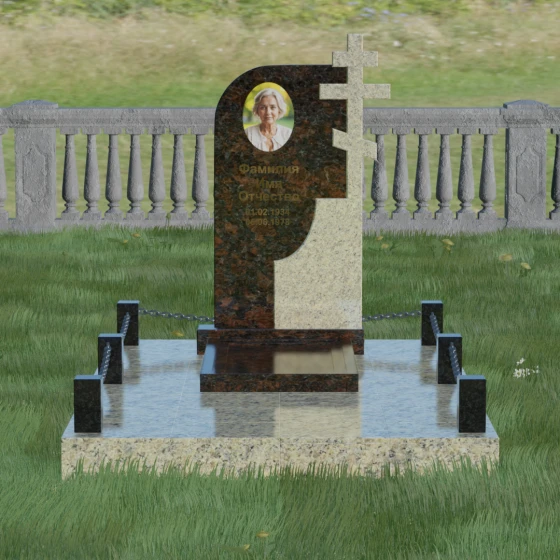 Выбор мемориального комплекса — это всегда глубоко личный процесс, стремление выразить в камне ту любовь и уважение, которые мы храним в сердце. Модель под артикулом 019 создана для тех, кто ценит благородную асимметрию и глубокий символизм. Величественная стела представляет собой сложную художественную композицию, в которой мастерски скомбинированы две контрастные фактуры. Левая часть памятника имеет мягкий, плавный изгиб, символизирующий завершенный жизненный путь, наполненный светом и душевным теплом. Правая же сторона акцентирована монументальным православным крестом, который является не просто элементом оформления, а неотъемлемой частью самой конструкции.