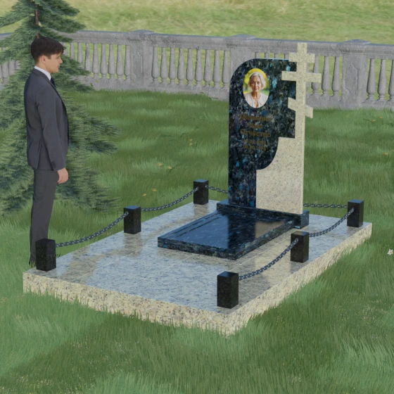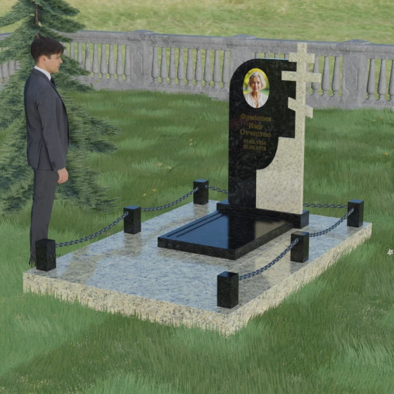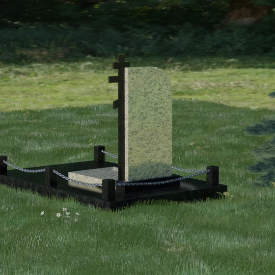 Завершенность композиции придает массивный гранитный цоколь и декоративное ограждение. По углам участка располагаются строгие каменные столбики с аккуратной фаской, соединенные декоративными цепями. Это создает четкие границы сакрального пространства, подчеркивая уединенность и покой. Каждый элемент — от массивного основания до вершины креста — подогнан с ювелирной точностью, формируя единый ансамбль, который будет служить достойным воплощением вашей памяти. Мы поможем вам на каждом этапе, чтобы этот сложный выбор стал шагом к обретению душевного равновесия и созданию места, куда захочется приходить для тихой беседы с тем, кто навсегда остался в вашем сердце.