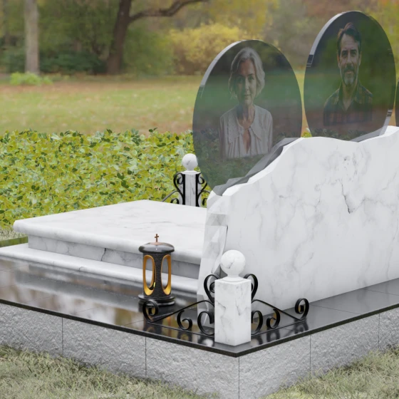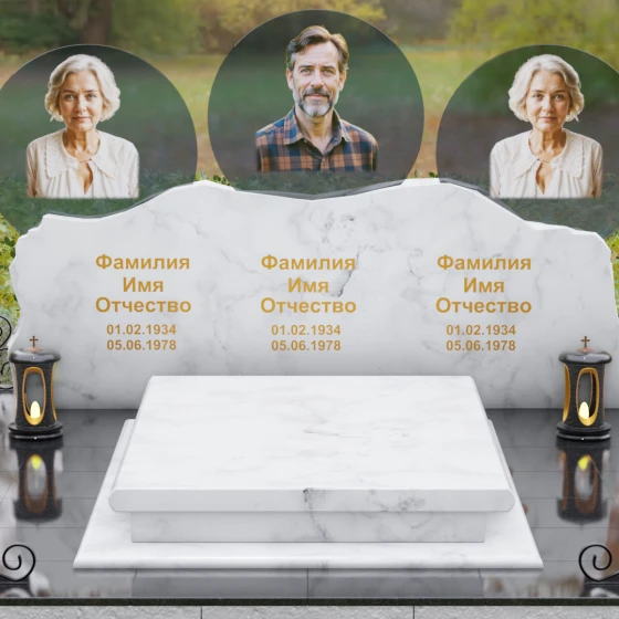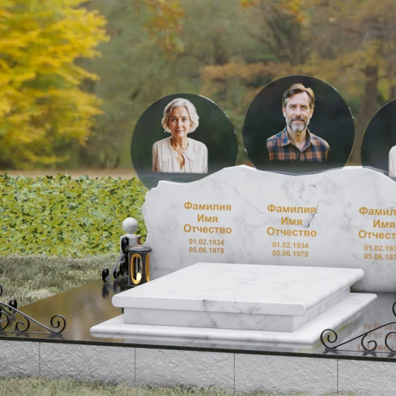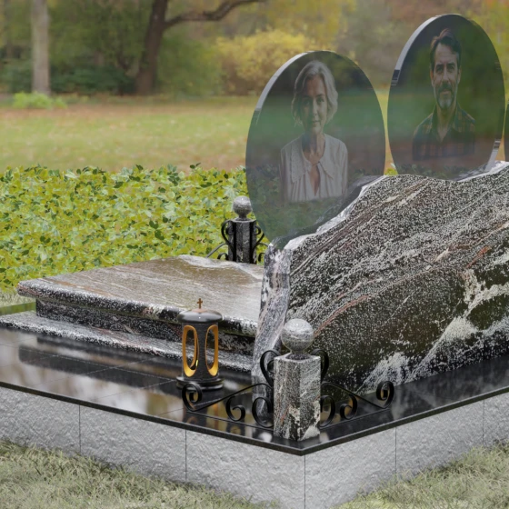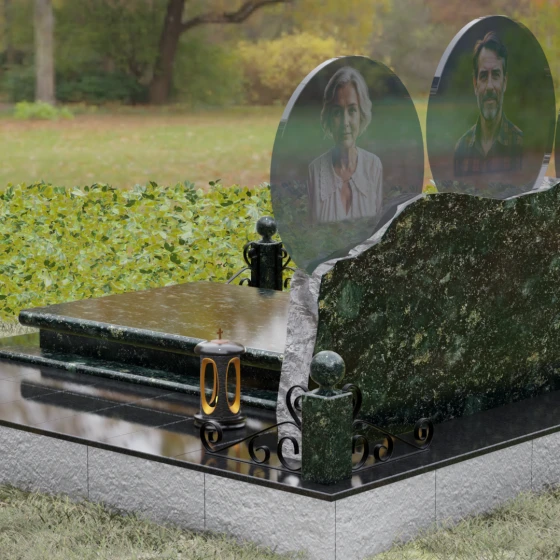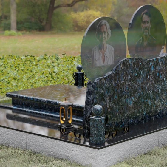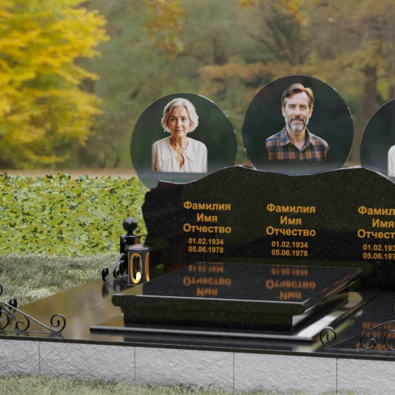 Расположение портретов в идеальных кругах позволяет гармонично сбалансировать композицию, делая акцент на лицах, в то время как обширное пространство нижней части изделия оставляет место для эпитафий, выражающих вашу безмерную любовь и скорбь. Благоустройство участка дополняется сплошной надгробной плитой, которая закрывает открытый грунт, придавая всему мемориальному комплексу завершенный, аккуратный и величественный вид, избавляя вас от необходимости постоянной борьбы с сорняками.