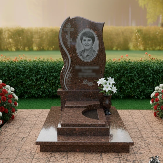 Рекомендуется дополнить композицию гранитными вазами для цветов и лампадами, выполненными в едином стиле с памятником. Это позволит создать завершенный и гармоничный образ места захоронения, подчеркивающий уважение и любовь к усопшему.