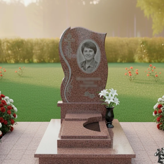 Конструкция памятника продумана таким образом, чтобы обеспечить его долговечность и простоту в уходе. Плавные формы препятствуют скоплению грязи, а закрытая плита надгробия позволяет избежать прорастания сорняков. Для портрета на стеле рекомендуется использовать гравировку с последующей обработкой акриловыми красками или сусальным золотом, что придаст изображению выразительность и долговечность.