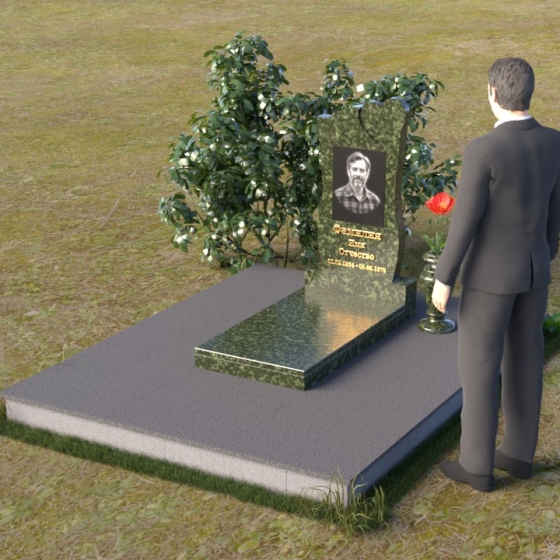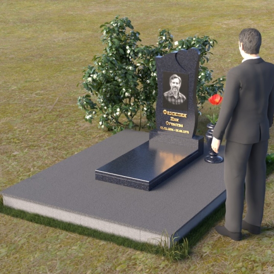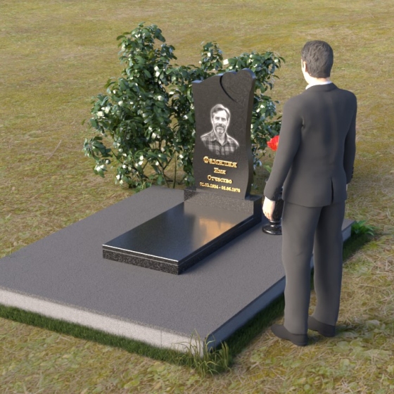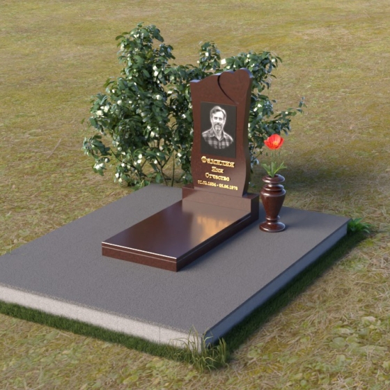 На отполированной поверхности стелы идеально разместится портрет усопшего, выполненный методом гравировки. Благодаря гладкой фактуре камня, изображение получится четким и выразительным, передавая все тонкости черт лица. Золотистые буквы имени и дат жизни, нанесенные аккуратным шрифтом, будут элегантно выделяться на фоне темного гранита, создавая гармоничный и завершенный образ.