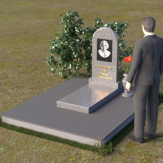 Форма стелы ПВ 069 предоставляет прекрасные возможности для размещения портрета и памятной надписи. Изображение можно расположить в верхней части стелы, где оно будет хорошо освещено и заметно. Золотое тиснение имени и дат жизни на темном фоне гранита создает элегантный контраст и добавляет торжественности. Вертикальное расположение текста гармонично сочетается с формой стелы и позволяет разместить достаточное количество информации, чтобы выразить всю глубину вашей любви и скорби. Рядом со стелой можно установить небольшую вазу для цветов, которая станет символом неувядающей памяти и заботы. Маленькая гранитная плита, расположенная перед стелой, может служить местом для возложения венков или памятных вещей.