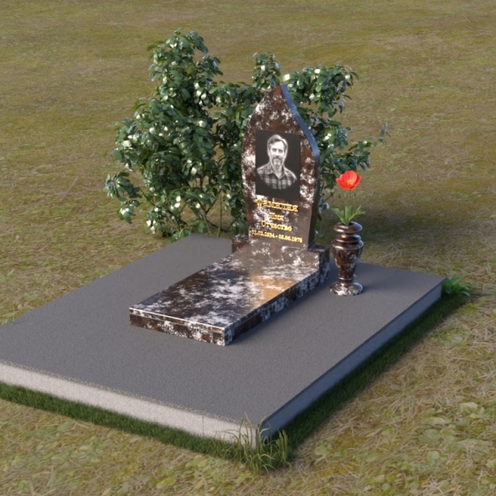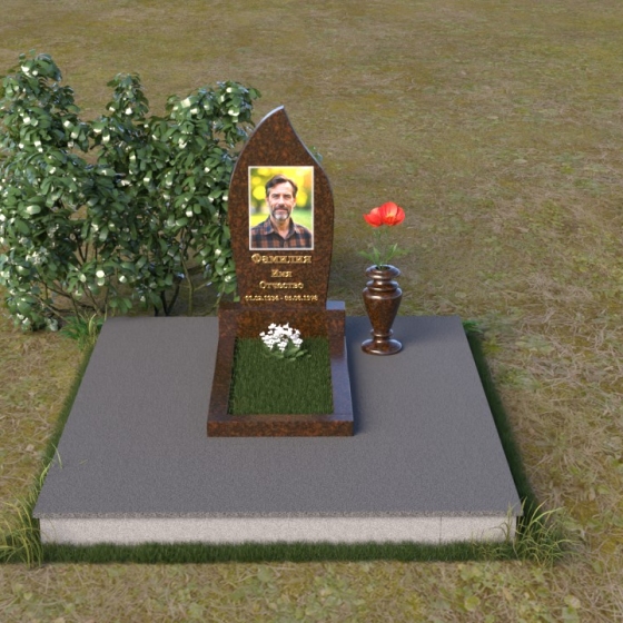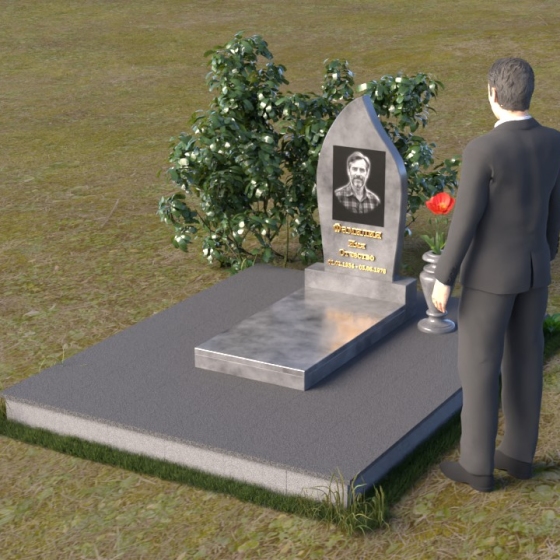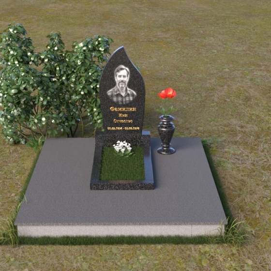 Начиная с основания, мы видим строгую прямоугольную форму плиты, обеспечивающую устойчивость всей конструкции. Ее матовая поверхность, контрастируя с глянцем верхней плиты, создает эффект глубины и объема. Горизонтальная плита, словно зеркало, отражает небо и окружающий мир, напоминая о связи земного и небесного. Верхняя часть памятника – самое выразительное и символичное. Ее форма, напоминающая пламя свечи или каплю, застывшую в вечности, символизирует память, скорбь и надежду на вечную жизнь. Грани плавно переходят одна в другую, создавая ощущение мягкости и гармонии. В верхней части нанесено изображение усопшего, выполненное с высокой точностью и детализацией. Ниже располагается надпись с именем и датами жизни, выполненная элегантным шрифтом.