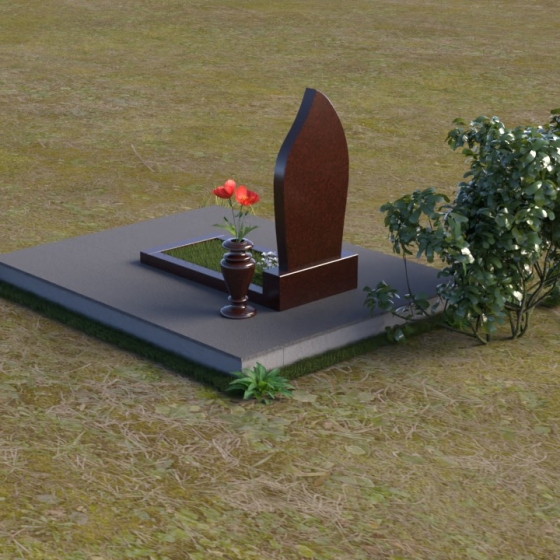 Этот гранитный монумент представляет собой композицию, где каждая деталь продумана до мелочей. В основании лежит массивная плита, создающая ощущение надежности и незыблемости. На ней установлена горизонтальная надгробная плита с зеркальной полировкой, отражающая небесный свет и символизирующая чистоту души. Завершает композицию вертикальное сооружение, выполненное в форме стилизованного пламени или капли, устремленной ввысь.